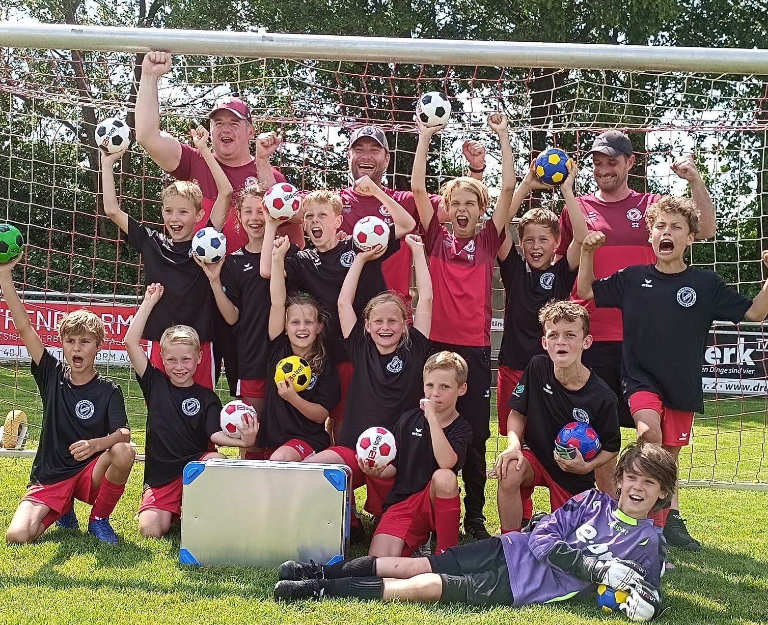 Überglücklich aber auch gespannt auf das, was da kommt, gehen die roten Teufelinnen und Teufel in die Sommerpause und kommen geschlossen im Herbst als E1 wieder zurück. Aufgrund der starken Leistungen haben die Trainer für die letzten Tage trainingsfrei gegeben und die Mannschaft schon frühzeitig in den Sommerurlaub entlassen.