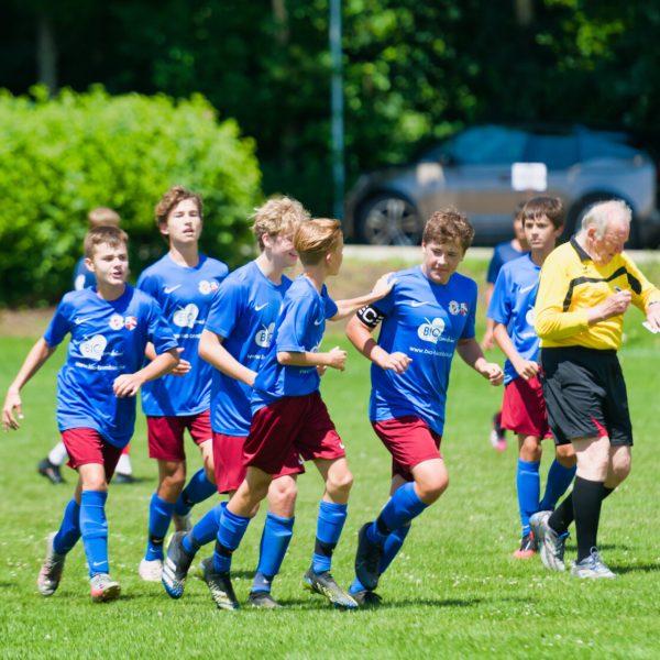 Somit ging die erste Halbzeit verloren, und die Konzentration galt nun der zweiten Hälfte, welche wir zumindest wieder ausgeglichen gestalten wollten. Nach einer ersten wackligen Anfangsphase, welche durch ein nahezu komplettes Durchwechseln der Abwehr zu entschuldigen ist, spielten wir wieder forsch auf und sahen eine Partie, welche wir mit großem Einsatz auf Augenhöhe gestalten konnten. Leider fingen wir uns wieder nach einem Ballverlust im Mittelfeld einen weiteren Gegentreffer. Danach spielten wir zunehmend mutiger auf und attackierten noch früher, manchmal vielleicht etwas zu mutig, sodass der Gegner durch Konter stets gefährlich blieb. Immerhin wurden wir für unseren Aufwand belohnt und der starke Neo konnte mit einem platzierten Distanzschuss den 2:4-Anschluss erzielen. Die aufkeimende Euphorie wurde aber bald durch einen weiteren Gegentreffer zum 2:5 abrupt gestört. Umso höher war den Jungs anzurechnen, dass sie weiter munter nach vorne spielten.