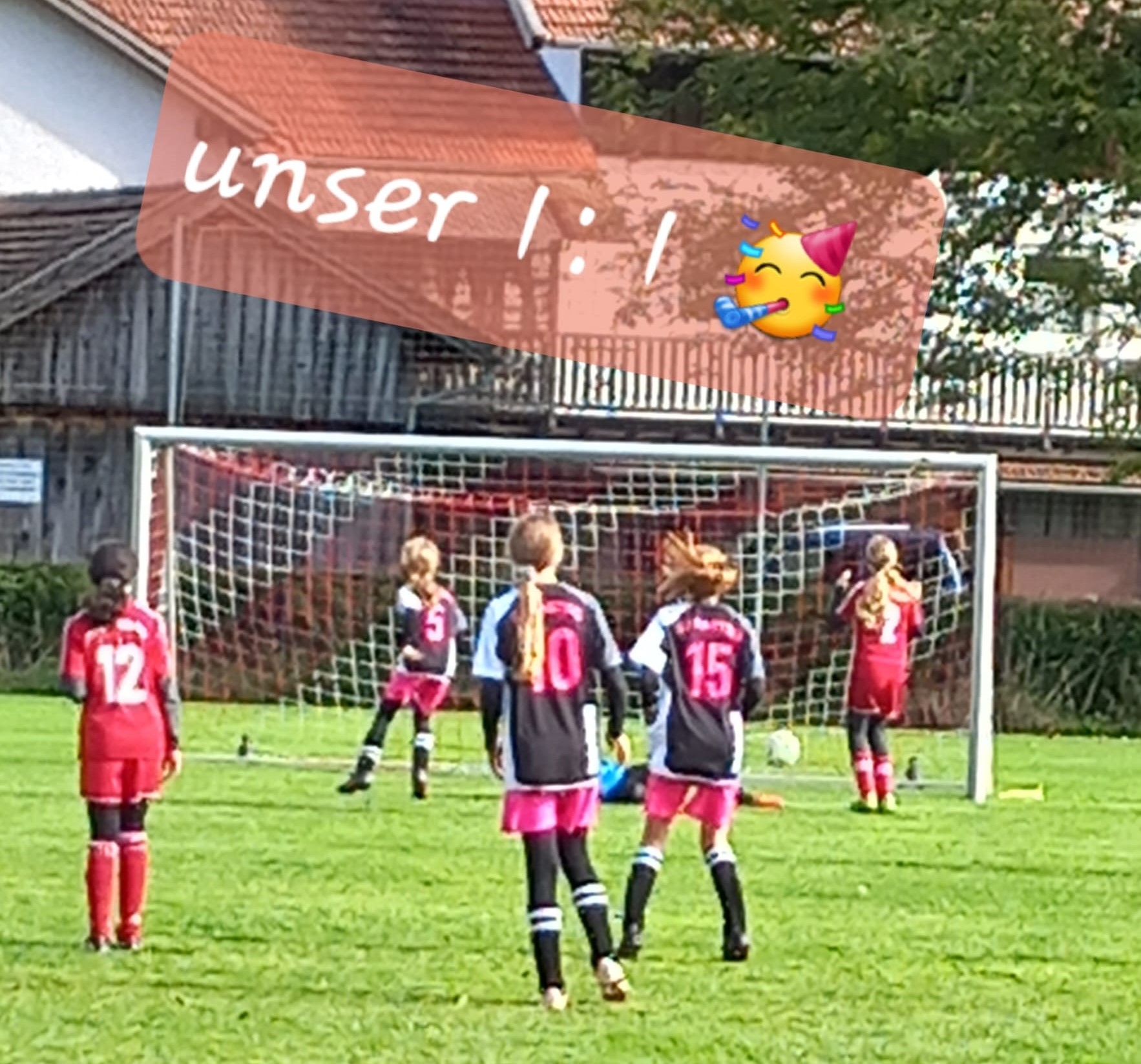 Der SVR startete gleich mit Schwung und erkennbarer Lust auf den Ausgleich. Auffällig: Die Mädels gaben keinen Ball verloren – nein der läuft nicht ins Aus, den krieg ich noch, auf der Linie geholt und rein ins Getümmel – das Mittelfeld und der Sturm hauten sich vorne rein, holten Ecken raus und kombinierten. Und so war das 1:1 durch Lilli Hoffmann in der 38. Minute nach Vorarbeit von Theresa Pauls nur konsequent. TOR!