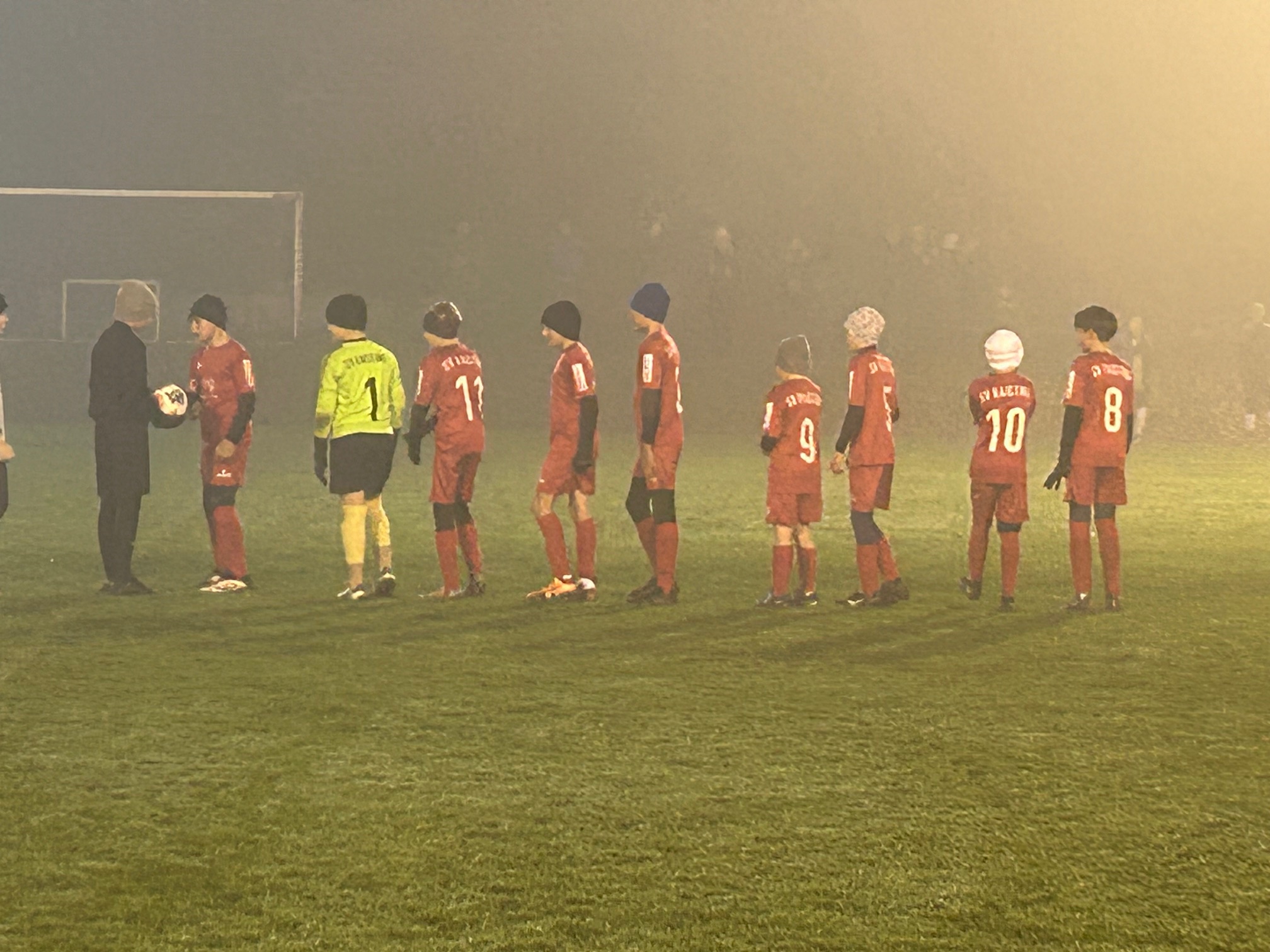 D-Jugend: Gerechtes Unentschieden im Nebel von „SanSiro“ Unter Flutlicht und bei nasskaltem Wetter mit dichtem