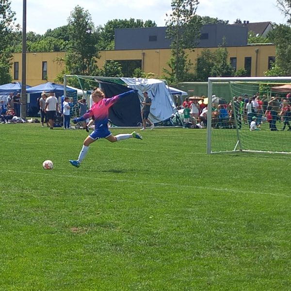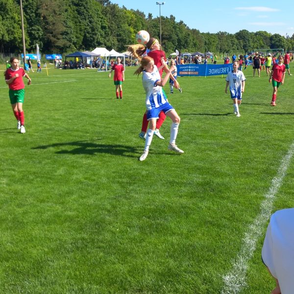 So stürmisch unser Team am Vortag unterwegs war, war auch die Nacht. Leider fiel unser Basecamp einem Sturm zum Opfer. Trotzdem ließ sich die Mannschaft nicht beirren und trat zum ersten Platzierungsspiel gegen die Niederlande, vertreten durch den FC Altera Porta aus Wien, an. Durch einen souveränen 1:0 Sieg, Torschützin war abermals Amalie Dopfer, qualifizierte man sich für das Spiel um Platz fünf. Dort traten unsere Mädels gegen Dänemark, vertreten durch die Biegelkicker Erdmannshausen aus der Nähe von Ludwigsburg, an. Auch in diesem Match zeigten sich beide Teams sehr spielfreudig. Es ging munter hin und her, mit hochkarätigen Torchancen auf beiden Seiten. Beide Torhüterinnen hatten einen Sahnetag, konnten sich ein ums andere Mal auszeichnen und so ihre Mannschaft im Spiel halten. Nach der regulären Spielzeit stand es 1:1 und so musste das Elfmeterschießen die Entscheidung bringen. Leider ging aus den Duellen vom Punkt Dänemark als Sieger hervor. Trotz allem beendete unser Team ein stark besetztes Turnier auf einem hervorragenden sechsten Platz von 16 D-Juniorinnen-Teams! Nach der Siegerehrung und nachdem die erste Enttäuschung verflogen war traten Spielerinnen, Eltern und Fans zufrieden die Heimreise an.